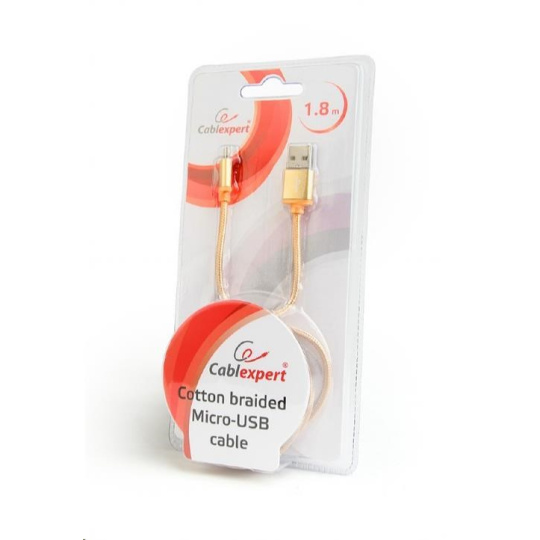 Cotton braided Micro-USB cable with metal connectors, 1.8 m, gold color, blister