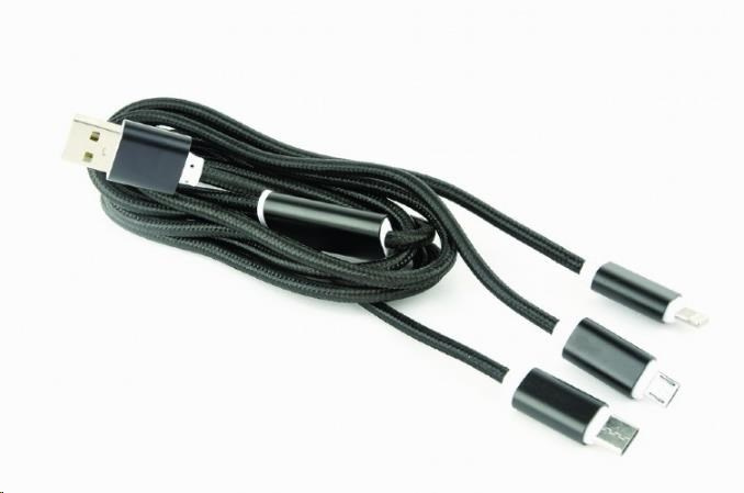 GEMBIRD Kabel USB A Male/Micro B + Type-C + Lightning, 1m, opletený, černý, blister