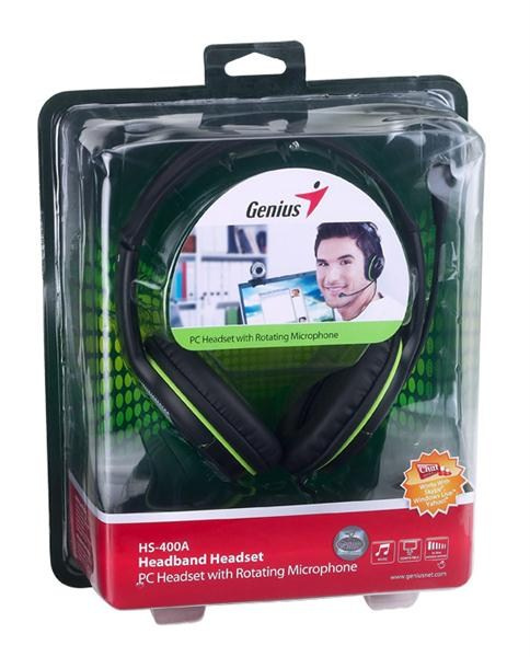 GENIUS sluchátka s mikrofonem HS-400A, černozelená
