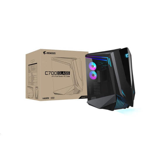 GIGABYTE case AORUS C700 GLASS, bez zdroje, průhledná bočnice, Full Tower, černá