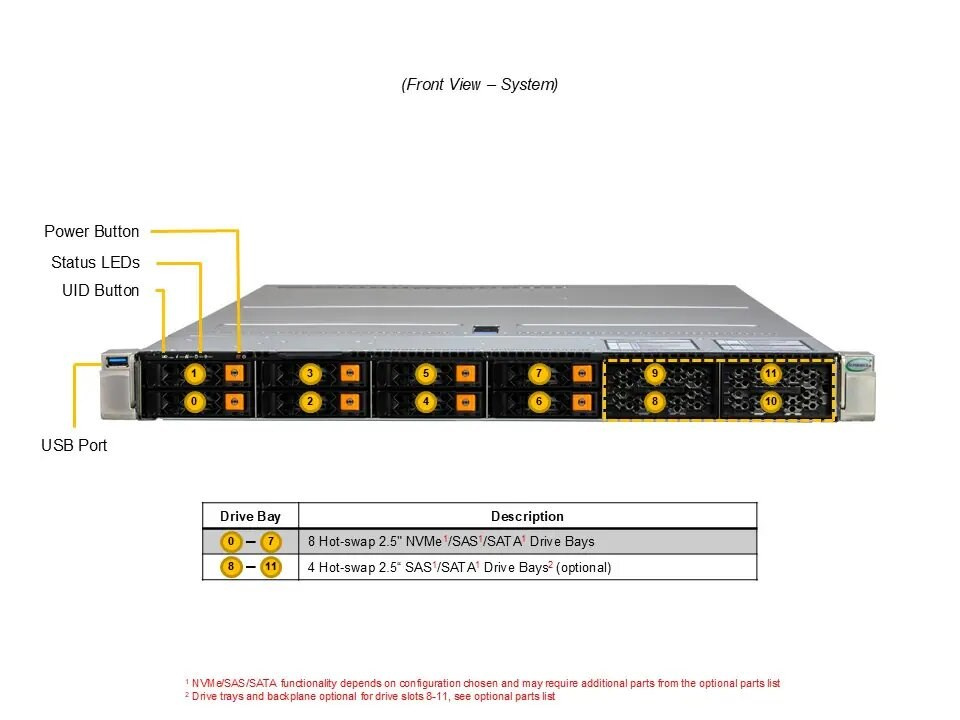 | Úložiště | Až 12x 2.5" NVMe, SATA nebo SAS disky |