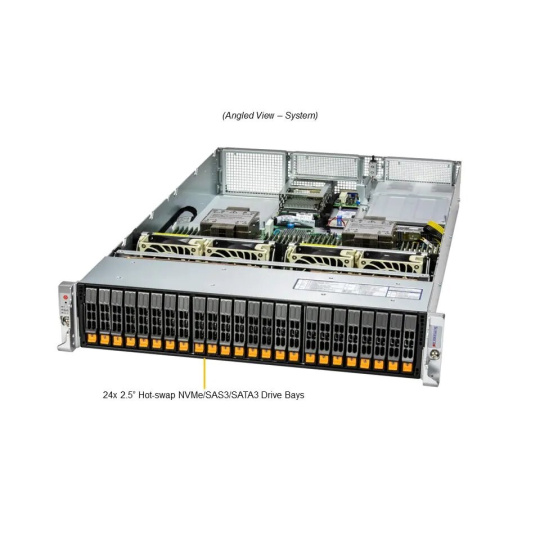 SYS-221H-TN24R-G1, 2x Intel® Xeon® 6548Y+ (32Core/2.5GHz), 4x 64GB DDR5-5600, 2x 960GB M.2 NVMe SSD, 4x 3.8TB U.2 NVMe SSD, 1x Quad 25GbE SFP28, 2x 1600W Titanium Level.... více
