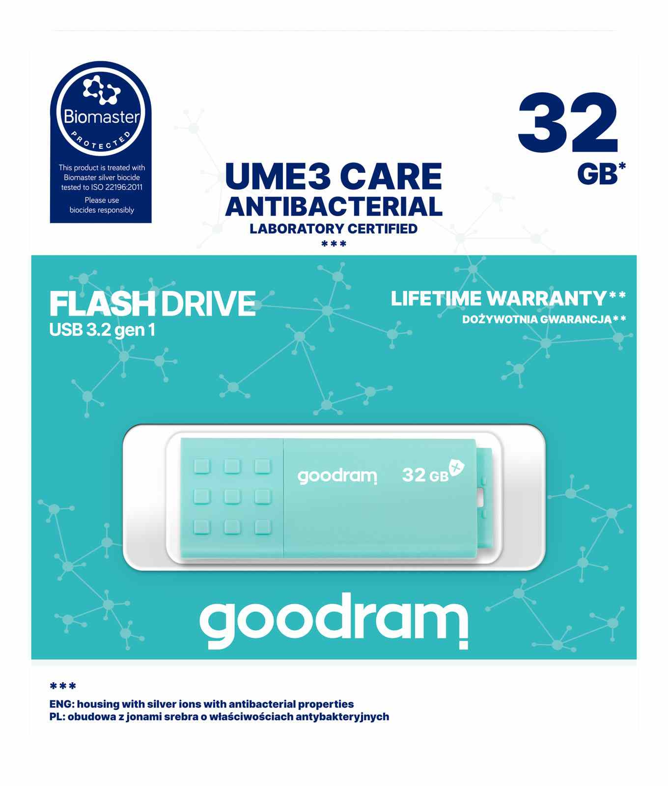Systém UME CARE byl vyvinut pro uživatele, pro které jsou bezpečnost a hygiena, zejména v kancelářských prostorách, prioritou. Paměťové karty využívají technologii Biomaster – pouzdro výrobku je pokryto vrstvou s antibakteriálními vlastnostmi obsahující ionty stříbra. To zaručuje trvalou ochranu po celou dobu životnosti paměťové karty USB UME CARE.