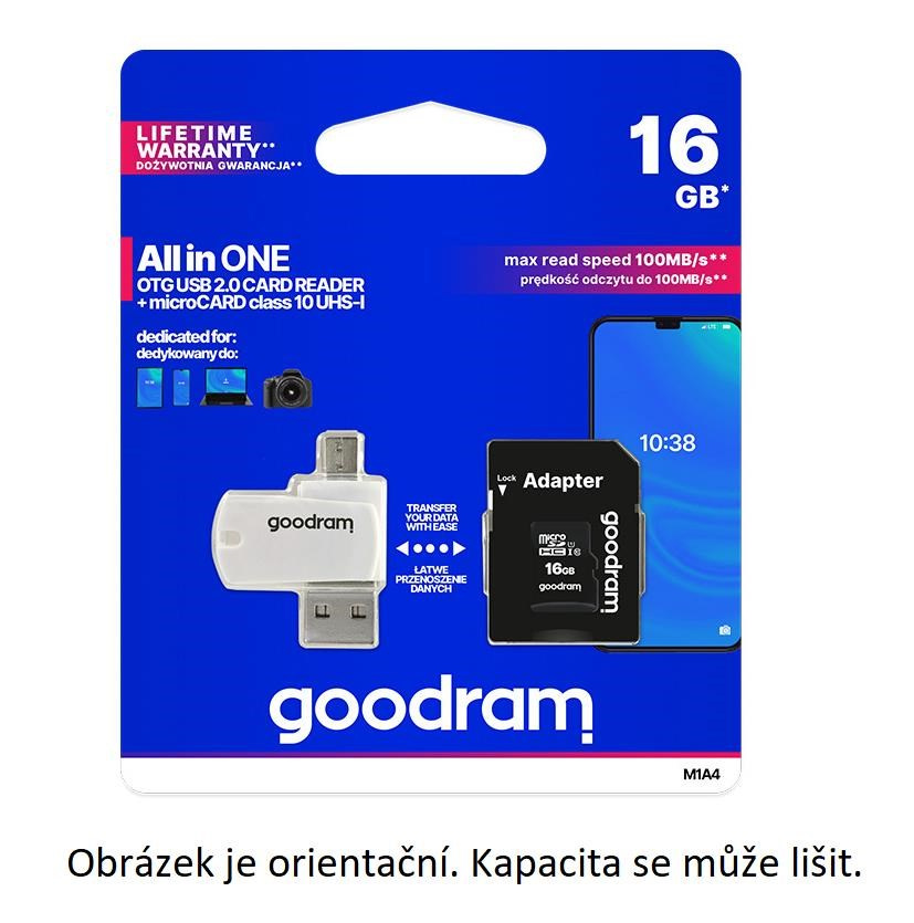 GOODRAM microSDXC karta 128GB M1A4 All-in-one (R:100/W:10 MB/s), UHS-I Class 10, U1 + Adapter + OTG card reader/čtečka