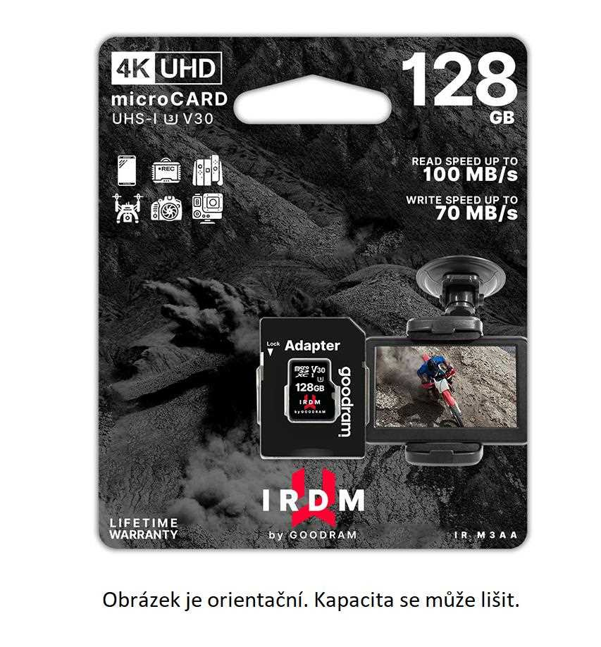 MicroSD karta IRDM UHS-I U3 přináší vysoký výkon a spolehlivost pro každého, kdo chce natáčet 4K a zpomalená videa nebo pořizovat vysoce kvalitní snímky JPEG/RAW v režimech rychlé série.