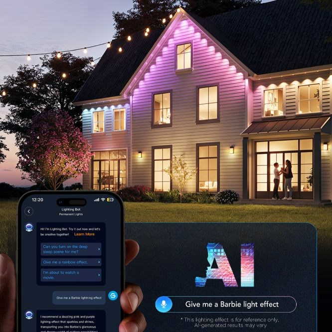 Permanentní světla na dům byla navržena pro maximální efekt s minimálním úsilím. Jednoduchost ovládání zajistí, že svůj čas můžete trávit s blízkými, a ne s technologií. 16 milionů barev, 100 scén, DIY režim pro vlastní návrhy, a navíc AI generované scény podle vašich příkazů