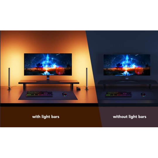 Vylepšete své herní, filmové a hudební zážitky s chytrými světelnými panely Govee Smart Gaming. 16 milionů barev s 62 režimy a 8 režimů pro synchronizaci s hudbou povznesou zážitek ze sledování televize nebo hraní her na novou úroveň. Ovládají se hlasem přes Siri, Amazon Alexa nebo Google Assistant, přes aplikaci nebo přes Smart Dual ovladač. Nebudete proto ani muset vstávat z gauče. Barevné podsvícení opticky zvětšuje obraz, šetří oči a má živostnost až 50.000 hodin.