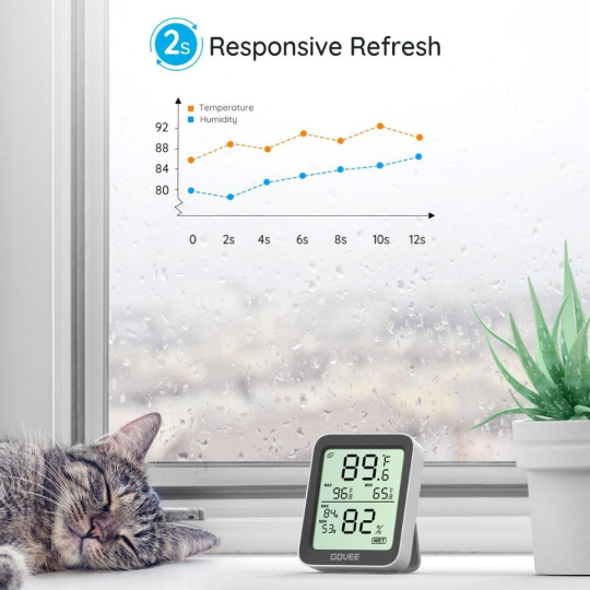 Spárujte zařízení s bezplatnou aplikací Govee Home, kde můžete sledovat historické trendy, nastavit upozornění a exportovat data pro hlubší analýzu — vše bez nutnosti Wi-Fi. Dlouhá výdrž baterie umožňuje měsíce bezúdržbového provozu a flexibilní možnosti umístění zajišťují, že měření je přesné, kdekoliv potřebujete. Ať už chráníte rostliny, sbírky, nebo optimalizujete své bydlení, tento chytrý hygrometr-teploměr vám poskytuje všechny nástroje, abyste měli situaci pod kontrolou.
