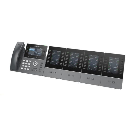 GBX20 je podsvícený LCD rozšiřující modul k IP telefonům GXV3350 a GRP2615. Modul obsahuje 20 dvoubarevných kláves a 2 klávesy se šipkami pro přepínání stránek. Na každém GBX20 můžete mít až 40 kontaktů/BLF (vidíte stav interní klapky). Při propojení až 4 GBX20, ke kompatibilním telefonům Grandstream, získáte celkem až 160 kontaktů/BLF.