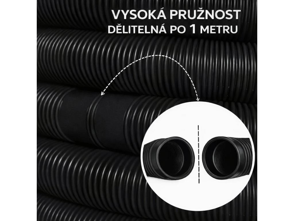 Bazénová hadice průměru 32 mm je určena k propojení filtrace s bazénem a dalším bazénovým příslušenstvím (např. vysavač, vakuová hlava, tepelné čerpadlo, solární ohřev apod.). Hadice je vcelku dlouhá 6 m, dělitelná po 1,0 m. Barva: černá Vnitřní průměr hrdla: 32 mm Délka 1 dílu: 1,0 m Materiál: HDPE + LDPE Max. teplota vody: 40 °C Balení: kartonová krabice.