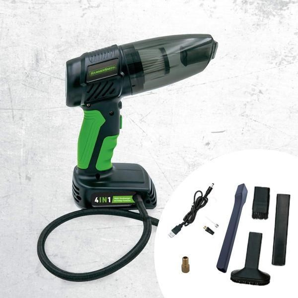 Objevte Hammersmith Air Storm - bezdrátový multifunkční vysavač 5 v 1 s funkcí kompresoru, který způsobí revoluci ve vašem životě! Tento všestranný přístroj vám poskytne výkon ručního vysavače a kompresoru v jednom, a to bez potíží s kabely. Ať už jej používáte v autě, doma nebo na cestách, vysavač Hammersmith Air Storm budete mít vždy po ruce. Tento inovativní vysavač dostane nečistoty ze všech mezer, ať už z čalouněného nábytku, pracovních ploch, spár nebo drážek. Ale to není všechno! Díky funkci kompresoru můžete snadno a rychle nafouknout míče, nafukovací matrace, pneumatiky jízdních kol, motocyklů nebo automobilů, aniž byste museli jít k čerpací stanici. Díky přehlednému LED displeji budete mít tlak v pneumatikách vždy pod kontrolou. Vzduchová pumpa Hammersmith Air Storm vám nabízí předprogramovaná nastavení pro nafukování pneumatik vzduchových matrací, kol, motocyklů a automobilů.