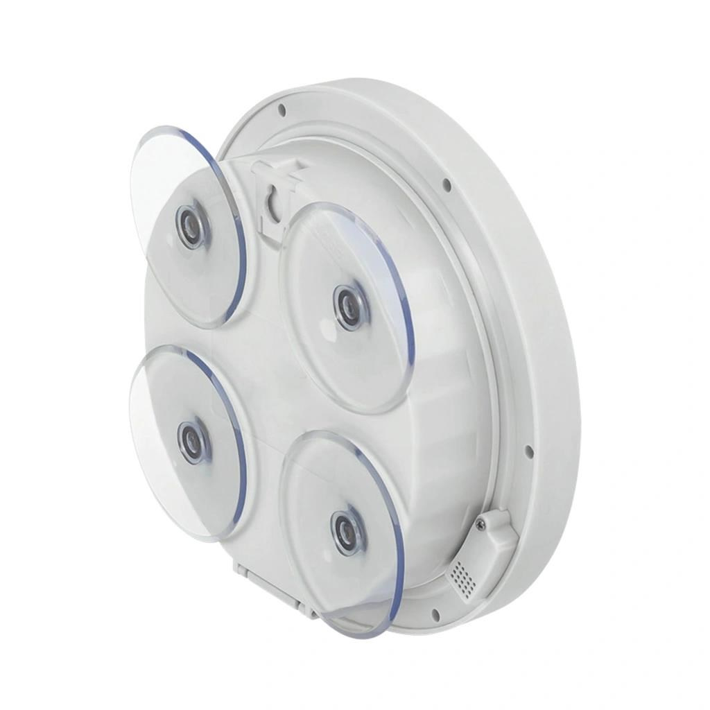 • analogové koupelnové hodiny • čas řízený rádiovým signálem DCF-77 • materiál plast • displej se zobrazením teploty a relativní vlhkosti (střídá se po 20 s) • průměr ciferníku 144 mm • možnost postavení, zavěšení, nebo pomocí přísavek • napájení na 1 ks baterie typ AA 1,5 V (tužková, není součástí balení) • barva bílá, ciferník bílý, číslice černé.