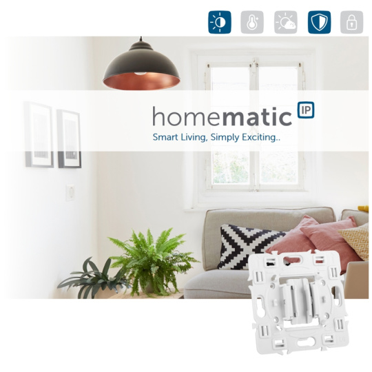 Adaptér umožňuje integrovat rámečky a kryty modelové řady Céliane nebo Mosaic od společnosti Legrand. Adaptér se integruje k spínacímu akčnímu členu HmIP-BSM-I.