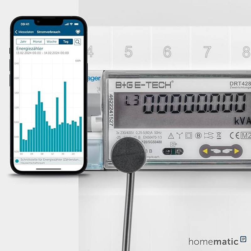 Rozhraní je vhodné pro průběhové nebo podružné elektroměry, které zaznamenávají příkon fotovoltaického systému nebo spotřebu energie z tepelného čerpadla. Údaje se vždy zobrazují v aplikaci Homematic IP. Instalace probíhá v několika málo krocích přímo na elektroměru. Informaci o tom, kolik impulsů na kWh váš elektroměr dodává, najdete přímo na elektroměru.