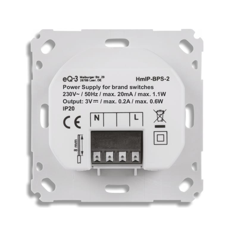 Napájecí zdroj lze snadno integrovat do standardní zápustné krabice pod omítku s připojením do stávající elektrické sítě 230 V. Bezdrátová komunikace připojené komponenty pak následně nabízí možnost instalace bez potřeby druhotné kabeláže. To znamená, že bateriově poháněnou komponentu systému Homematic IP lze umístit v místě připraveného nebo stávajícího el. rozvodu sítě 230 V bez typické potřeby pravidelné výměny baterií. Tento způsob napájení je nejen efektivní z hlediska úspory finančních nákladů na pořizování nových baterií, ale současně je velmi šetrný vůči zatížení životního prostředí.