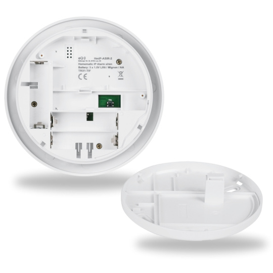Bezdrátová komunikace a bateriový provoz (3x baterie typu AA) nabízí možnost jednoduché instalace bez potřeby kabeláže. To znamená, že sirénu lze umístit snadno a takřka kdekoli v interiéru objektu. Podobnost sirény s designem Kouřového hlásiče požáru (HmIP-SWSD) umožní nenápadnou montáž na strop z dosahu narušitele.
