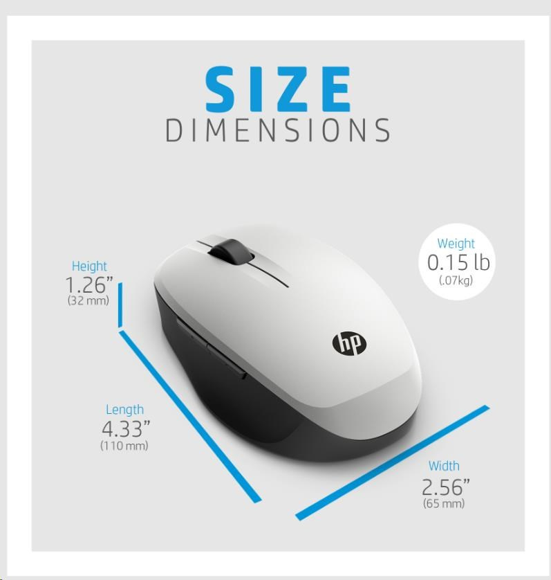 HP Dual Mode Silver Mouse 300 - bluetooth myš, připojení ke dvou PC zároveň