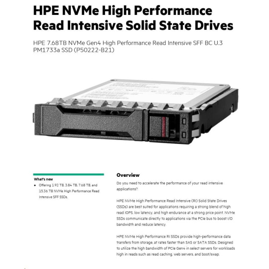 HPE 7.68TB NVMe Gen4 High Performance Read Intensive SFF BC U.3 PM1733a SSD P50222-B21 RENEW.