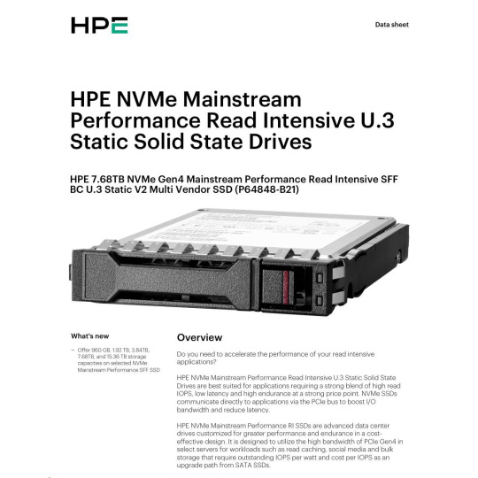 HPE 7.68TB NVMe Gen4 Mainstream Performance Read Intensive SFF BC U.3 Static V2 Multi Vendor SSD