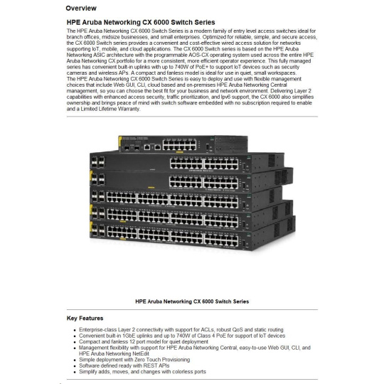 HPE Aruba Networking CX 6000 48G 4SFP Switch.