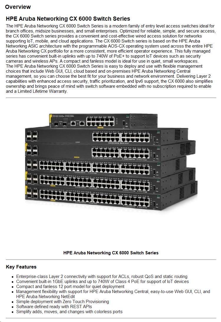 HPE Aruba Networking CX 6000 48G 4SFP Switch.
