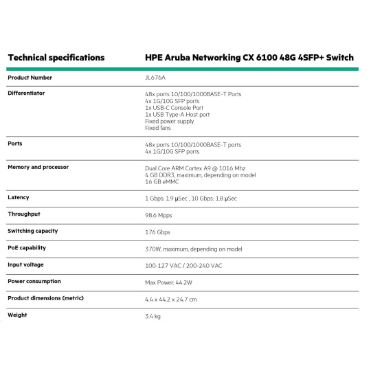 HPE Aruba Networking CX6100 48G 4SFP+ Switch RENEW JL676A