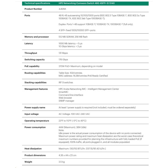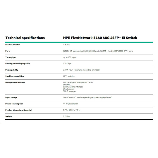 | HPE Networking Comware Switch 48G 4SFP+ EI 5140 | JL829A |