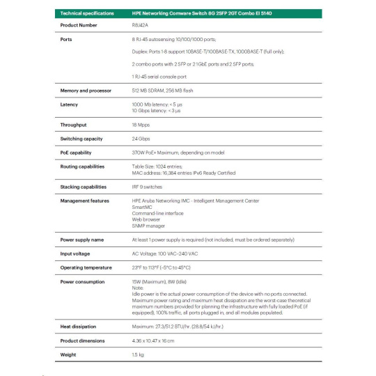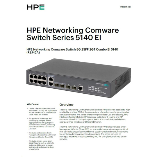 HPE Networking Comware Switch 8G 2SFP 2GT Combo EI 5140 R8J42AR RENEW