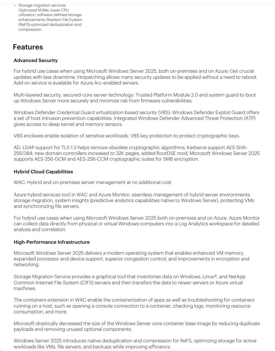 HPE Microsoft Windows Server 2025 10-core Essentials Reseller Option Kit CZ (25/50user/dev en/ru/po) OEM.
