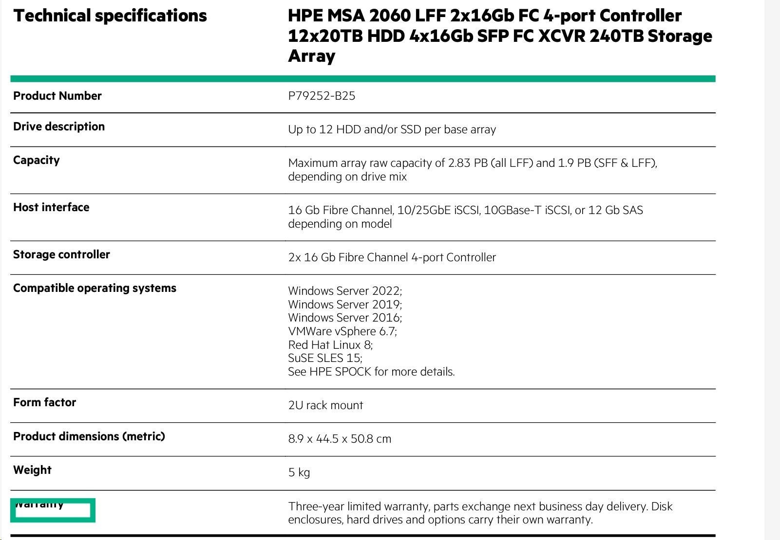 HPE MSA 2060 LFF 2x16Gb FC 4p Array.