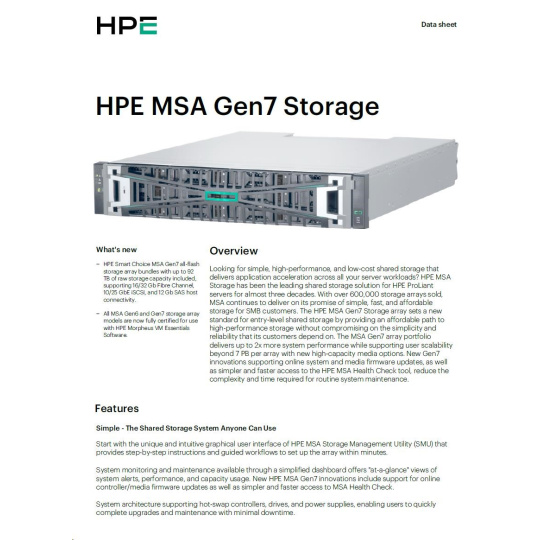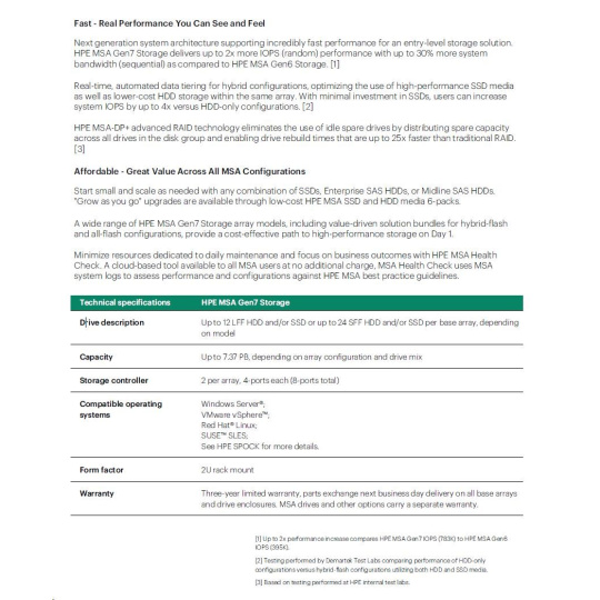 HPE MSA 2070 10/25GbE iSCSI SFF Storage.