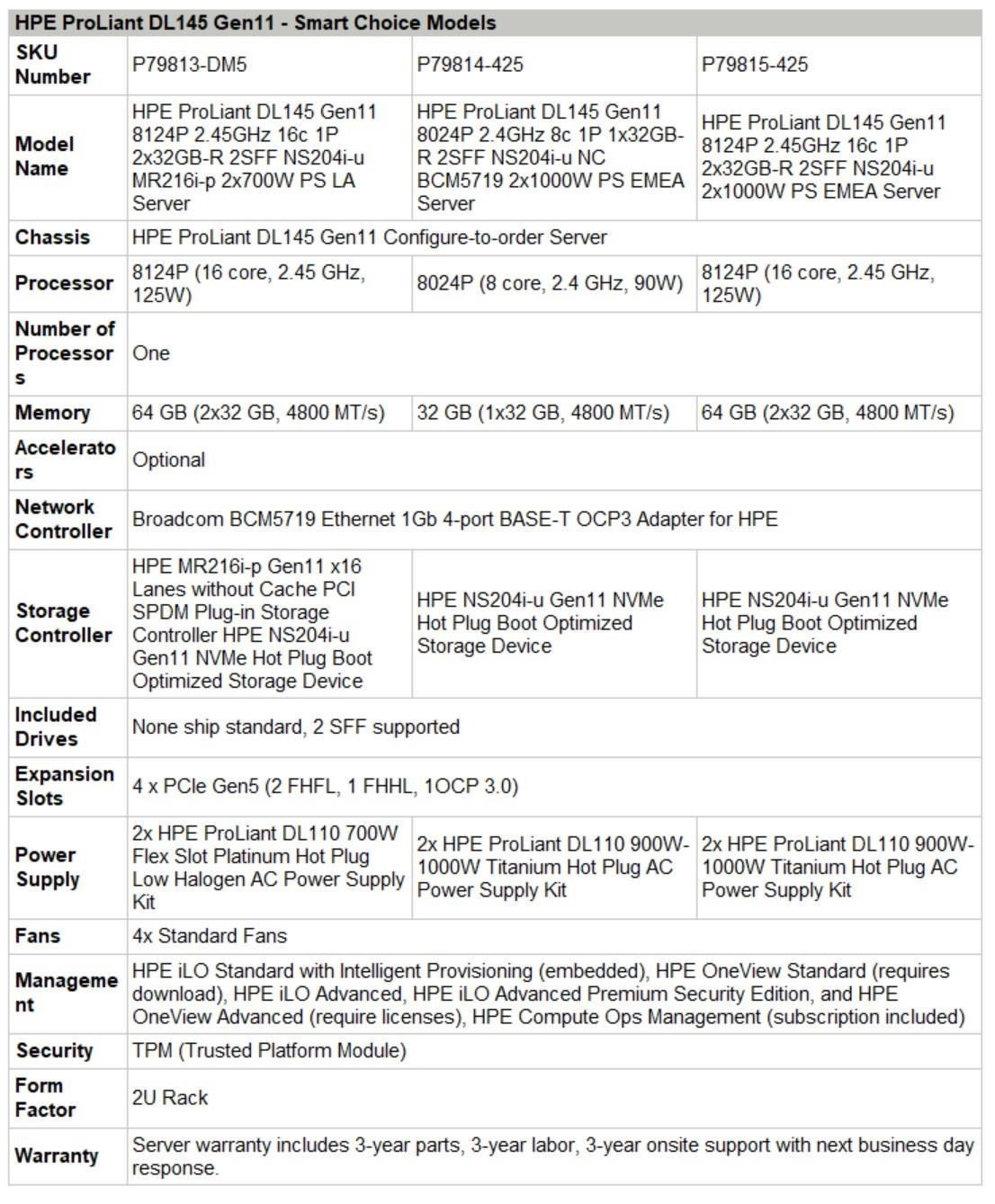 | 3/3/3: Server warranty includes 3 years of parts, 3 years of labor, and 3 years of onsite support coverage. Additional information regardingworldwide limited warranty and tech support is available at:https://h20564.www2.hpe.com/hpsc/wc/public/home. Add HPE support and service coverage to supplement the product warranty https://www.hpe.com/support |