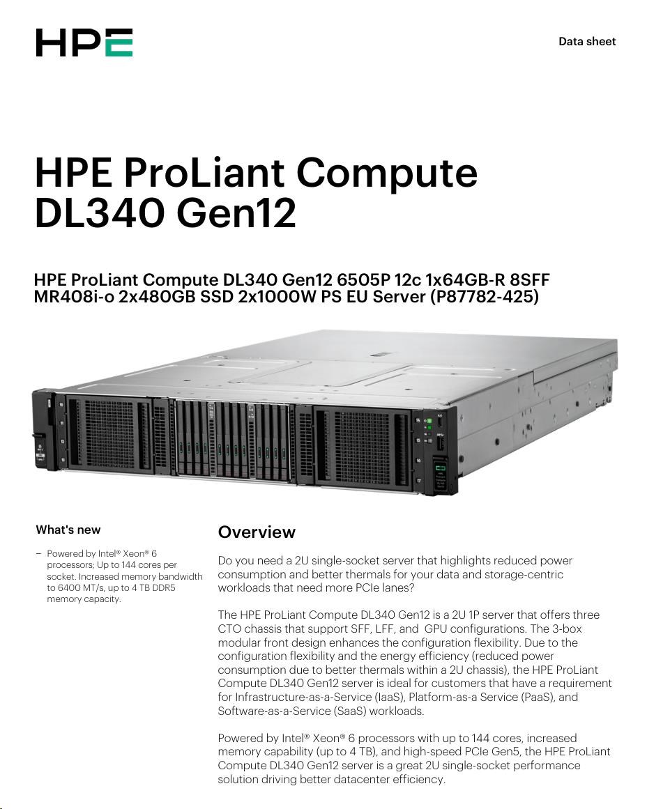 HPE PL DL320 Gen12 6505P (2.2/12C) 1x64G (P69728) 2x480G MR408i-o 8SFF 2x1000W 1GbE NBD333 Smart Choice.
