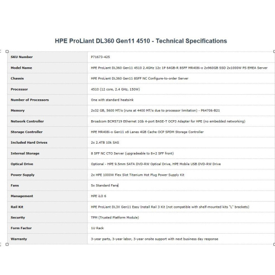 HPE ProLiant DL360 Gen11 4510 - Specs