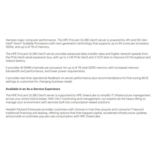 | Chassis | HPE ProLiant DL380 Gen11 8SFF NC Configure-to-order Server | |