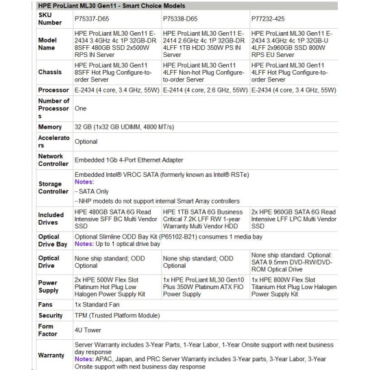 | HPE ProLiant ML30 Gen11 - Smart Choice Models | |