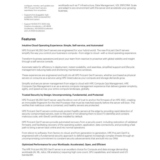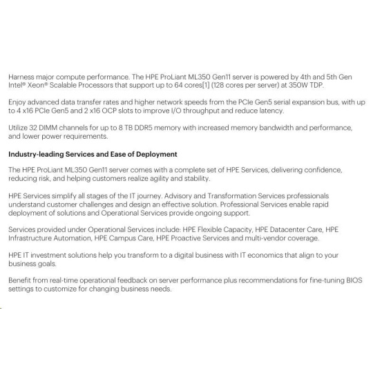 | Chassis | HPE ProLiant ML350 Gen11 LFF Configure-to-order Server |