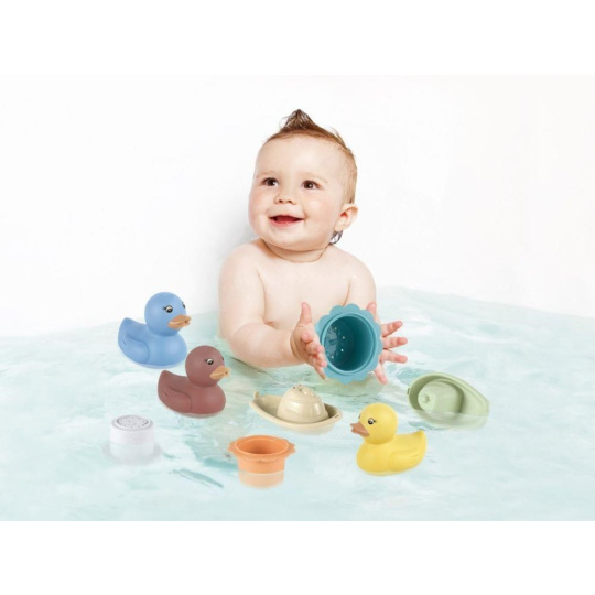 Sada hraček do vody 3v1, s oblíbenými kačenkami, promění každou koupel v zábavnou hru. Barevné kačenky, lodičky a kelímky se postarají o to, že koupání ve vaničce, vaně nebo v bazénku nebude nuda. K nabírání vody, přelévání a polévání poslouží stohovací kelímky s čísly, na vlnách se pohoupou barevné loďky a roztomilé kačenky..