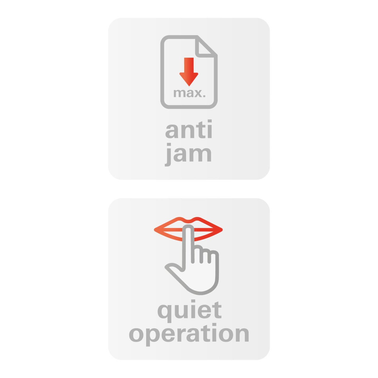 Skartovací stroj ke stolu. Masivní ocelové nože s doživotní zárukou poskytují základní stupeň utajení v proužkové řezu. Konstrukce je dvoudílná, s odnímatelnou hlavou. Manipulaci s horní částí stroje usnadňuje praktické madlo. Motor je chráněn tepelnou pojistkou, která omezuje dobu chodu. Stroj je schopen skartovat papíry i s kancelářskými sponkami a plastové karty.