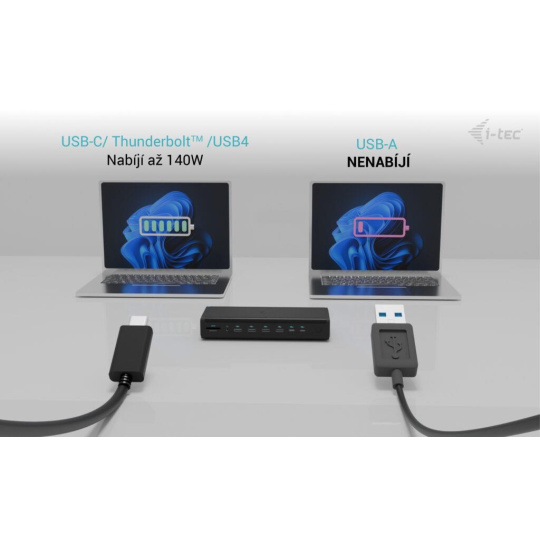 ** Pokud váš notebook nebo tablet podporuje nový a moderní nabíjecí protokol USB-A Power Delivery PD 3.1, dokovací stanice nabídne nabíjecí výkon až 140 W (pokud máte PD 3.0, nabíjecí výkon bude 100 W).