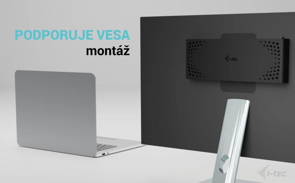- Dokovací stanice podporuje držák VESA pro inteligentní vertikální instalaci za monitor s podporou VESA