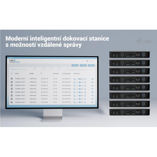 • Tato výkonná a univerzální dokovací stanice je vybavena dedikovaným LAN portem, který umožňuje plnou vzdálenou správu – až na úroveň jednotlivých portů – odkudkoliv. Správa funguje i bez připojení k hostitelskému zařízení – stačí napájení a připojení do LAN.