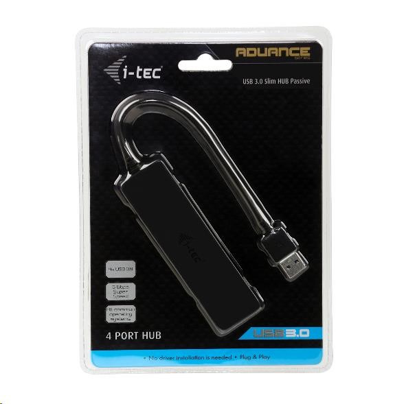 i-tec USB 3.0 Slim pasivní 4 portový HUB bez napájecího adaptéru, pro notebook, ultrabook, tablet, PC, Windows a Mac OS