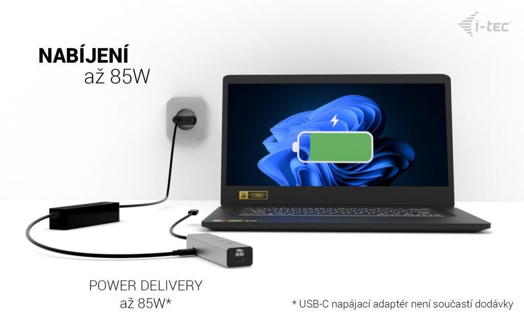i-tec USB-C Charging Metal HUB 5port with USB-C video 8K, Power Delivery 85W
