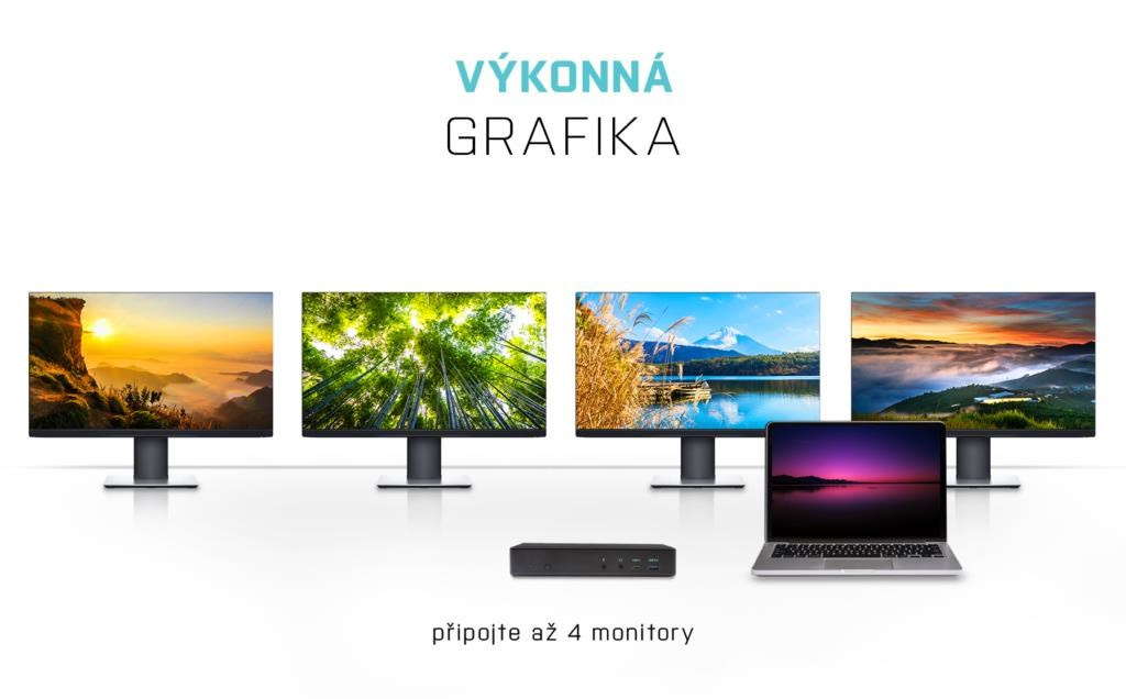 Profesionální dokovací stanice USB-C, která podporuje výstup až na čtyři externí monitory. Tato dokovací stanice je vybavena hybridním zpracováním obrazu: je postavena na technologiích DisplayLink a USB-C video přenosu, což jí umožňuje zpracování obrazu až na zmíněných čtyřech zobrazovacích zařízeních.