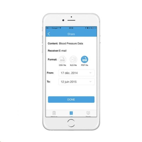 Aplikace iHealth MyVitals umožňuje naměřené hodnoty odeslat e-mailem v rámci rodiny, přátelům nebo osobnímu lékaři.
