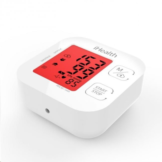 Vlastnosti a specifikace: Certifikace CE jako zdravotnické zařízení Měří systolický a diastolický krevní tlak a srdeční pulz Oscilometrická metoda měření Automatické nafouknutí manžety a provedení měření stiskem jediného tlačítka Místo měření: standardní – paže nad loktem Offline paměť pro 99 měření Možnost synchronizace s aplikací iHealth MyVitals (zdarma pro zařízení se systémem iOS a Android) Bezdrátový přenos naměřených hodnot do mobilního zařízení přes Bluetooth 4.0 Možnost ukládání, editace a prohlížení hodnot na cloudovém účtu, přístup z počítače Tlakový rozsah manžety: 0 až 300 mmHg Přesnost měření tlaku: ±3 mmHg Rozsah měřeného tlaku (systolický/diastolický): 60 až 260 / 40 až 199 mmHg Rozsah měřeného srdečního tepu: 40 až 180 úderů za minutu s přesností ±5 % Délka manžety: 22 až 42 cm Napájení: 4x AAA baterie Životnost baterií: cca 250 měření Automatické vypnutí po 1 minutě nečinnosti Rozměry přístroje (bez manžety): 98 x 98 x 46 cm Hmotnost přístroje (včetně manžety a baterií): 348 g
