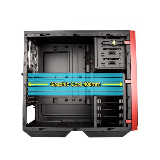 Vnitřek skříně disponuje dostatečným prostorem pro rozšíření, lze do něj zabudovat mimo jiné i několik high-end grafických karet do maximální délky 408 mm, nebo CPU chladič až do velikosti 170 mm. Důležitým prvkem je také dostatečně velký prostor pro organizaci a vedení kabelů. Na spodu skříně je pak příhodně umístěn odnímatelný prachový filtr, který kryje spodní větrací otvor.