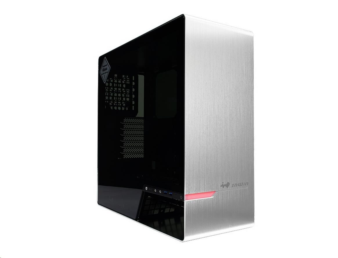IN WIN skříň 905, Mid Tower, průhledný bok, bez zdroje, titanium grey, oled, 3x Sirius fan