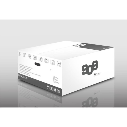 Počítačová skříň 909 je vyrobena z odolných materiálů, její zkosené hrany a hlavní konstrukce vyrobená z eloxovaného hliníku, vytváří v konečném výsledku mistrovské řemeslné dílo. Zadní designový panel skrývá veškerou kabeláž, a boční panely z tvrzeného skla dovršují moderní a dynamický vzhled.